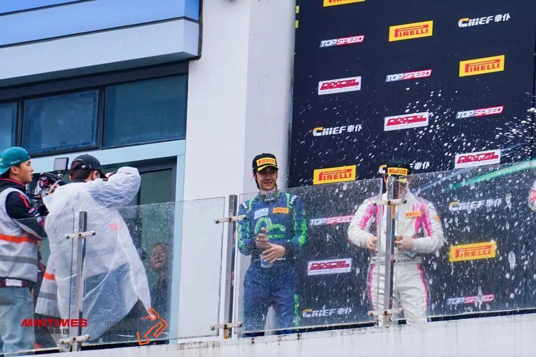 王一博(右二)在2025年中国超级跑车锦标赛季前热身赛颁奖典礼